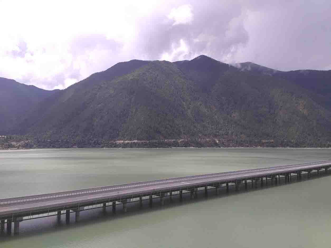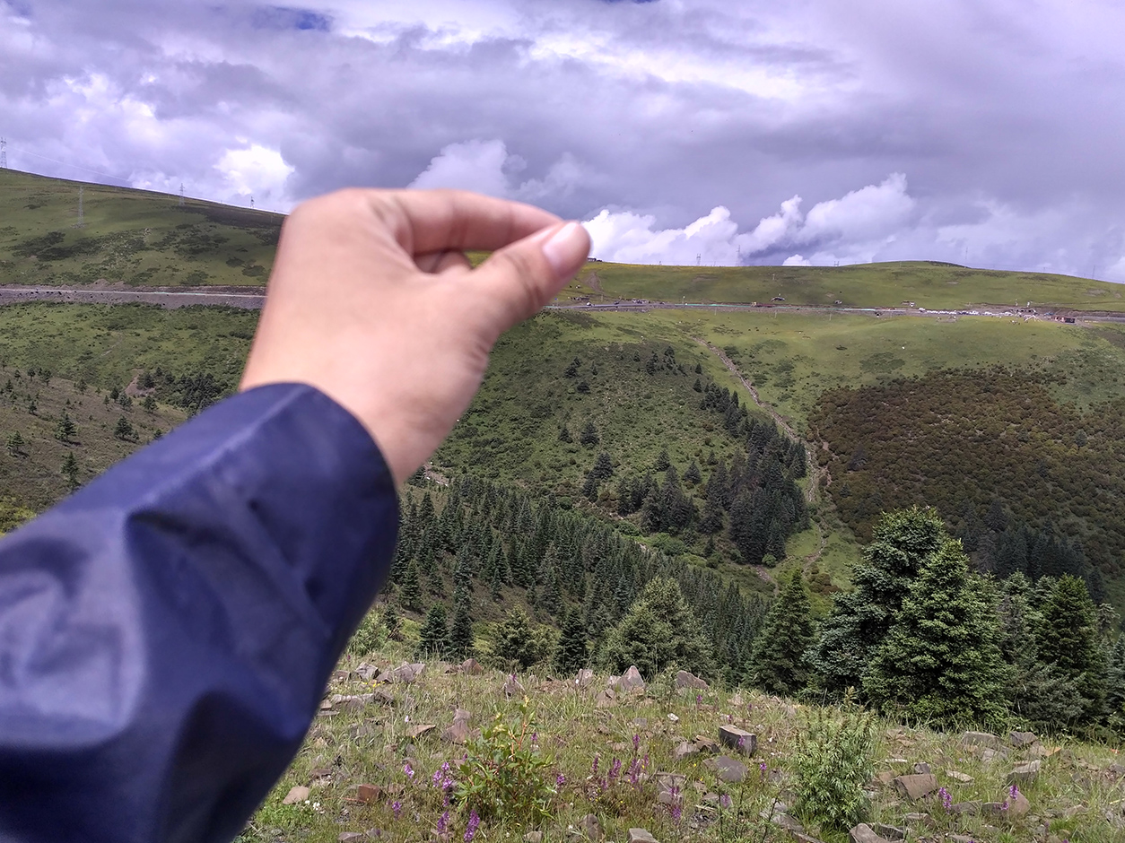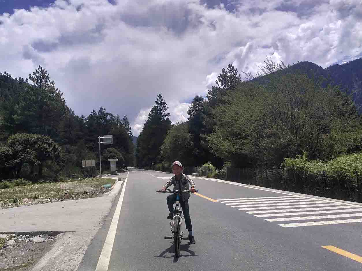 在山顶有位卖东西的藏族阿姨让我们免费打了两杯水。然后32km下坡+14km起伏路到达林芝市。