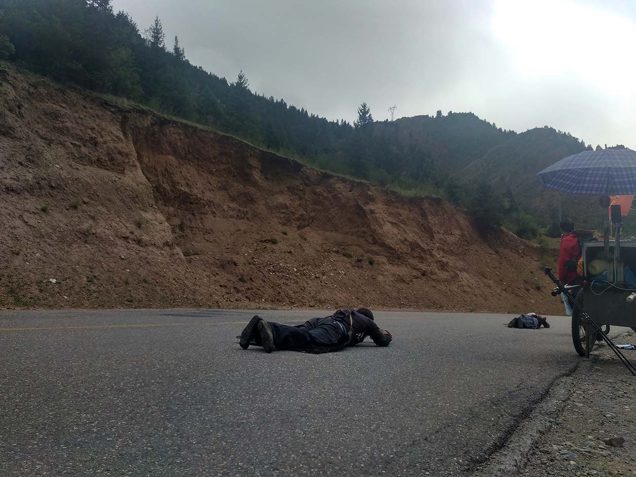 ▼第一次见到朝拜的人,走三步拜一次,真的是五体投地。一路要花费半年到一年时间。