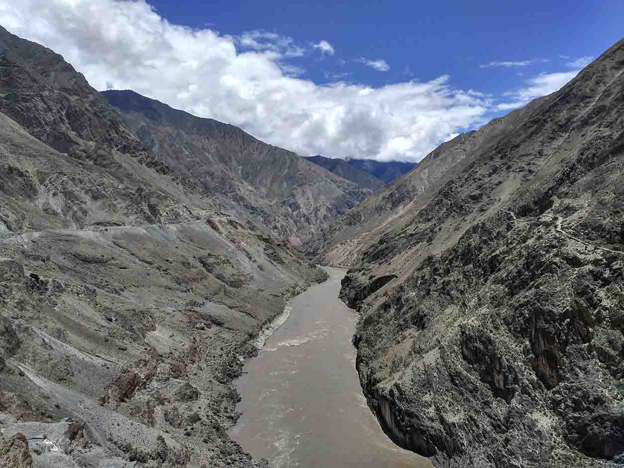 ▼两边的山上看起来一片荒芜,只有山谷下面的江水奔涌向前。