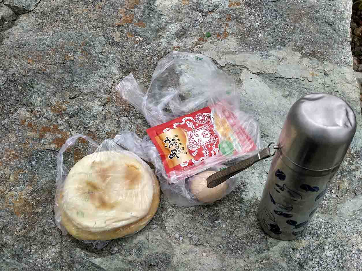 ▼遇到一家济南的自驾游老乡,送给我们两碗盒饭跟巧克力。