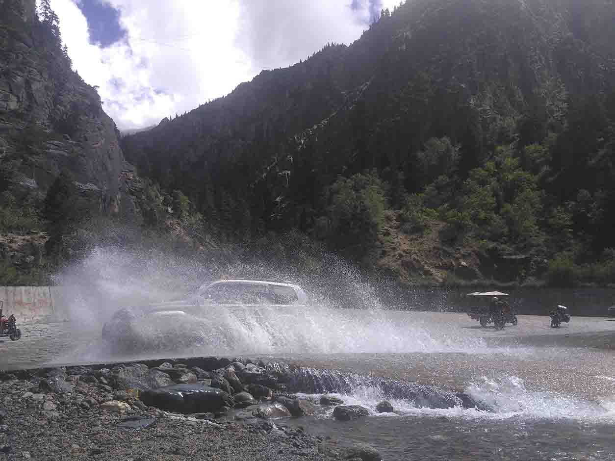 ▼经过一处涉水路段,许多自驾游的都在来回的开,冲刷一下车轮上的泥巴。