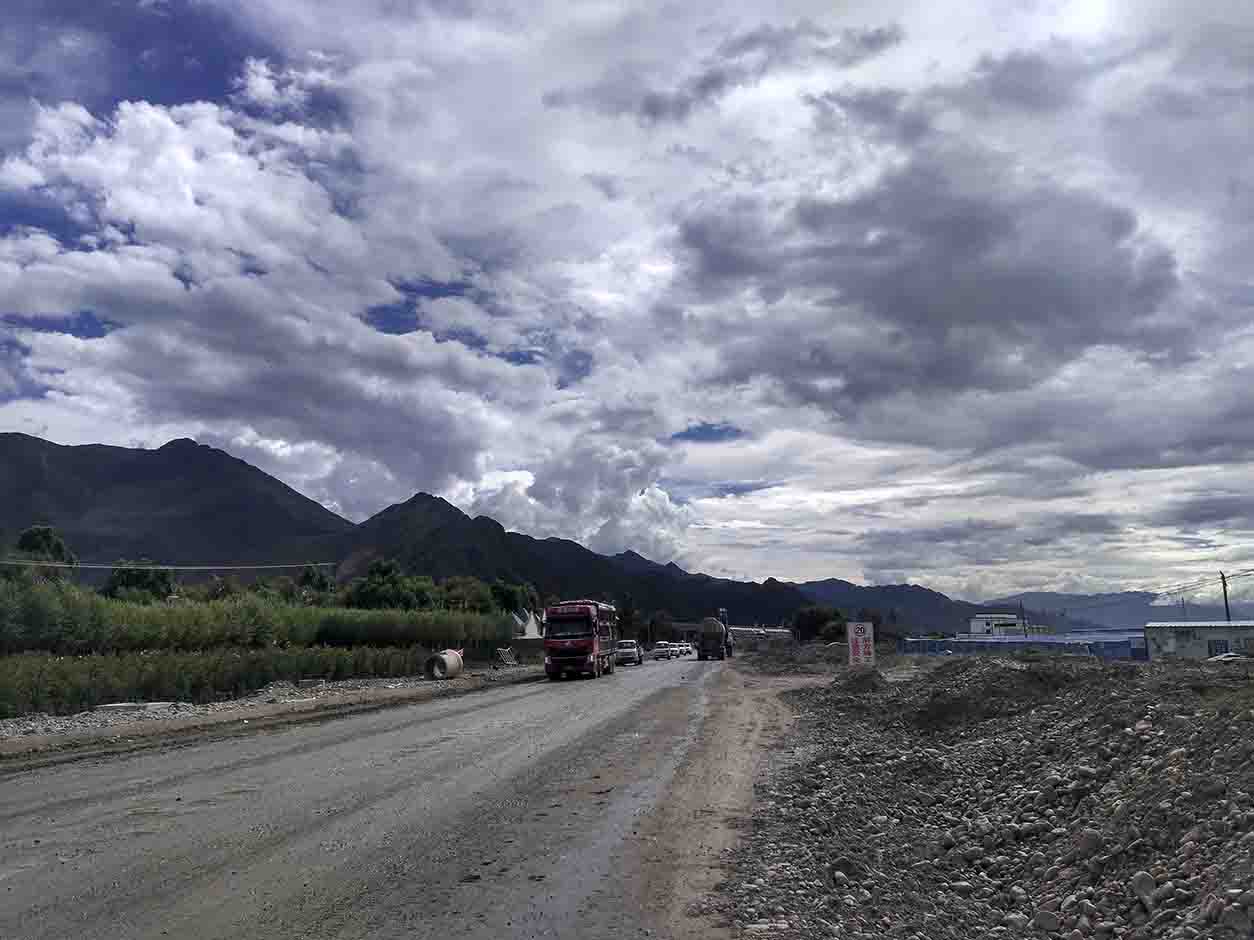 出了市区,见到几个徒步者,还有一个骑三轮摩托的老板,车上放着音乐,原来他在波密开店,还说他家的旅馆能看到雪山,一路上加骑友微信拉生意,后来到波密的时候就在那里住了一晚。下午多是山路,海拔升降不大,但是路比较危险,路很窄,并且很多大车。